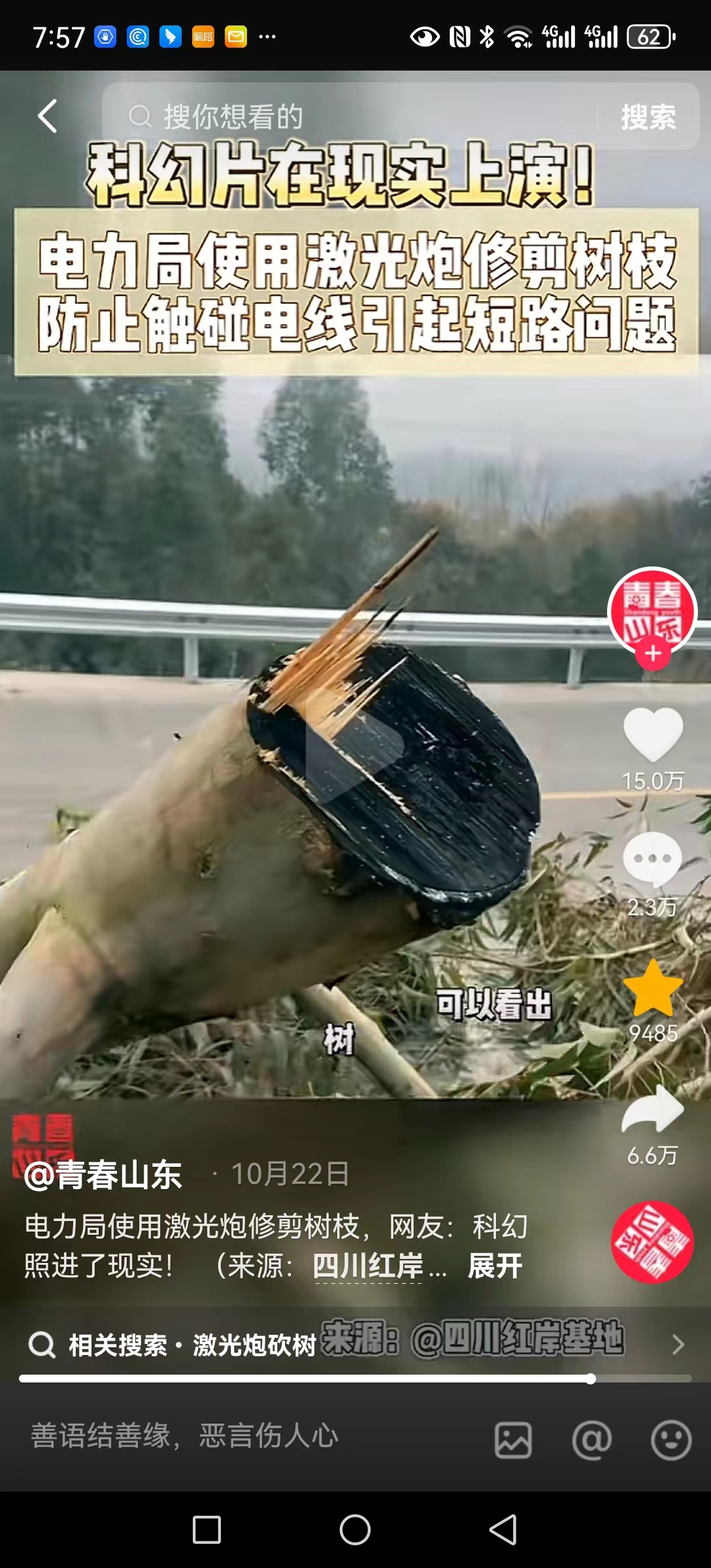 四川テレビ、「電力局がレーザー砲で枝を剪定」の背後にある技術的真実を探る、紅岸基地がレーザー障害物除去装置を解説